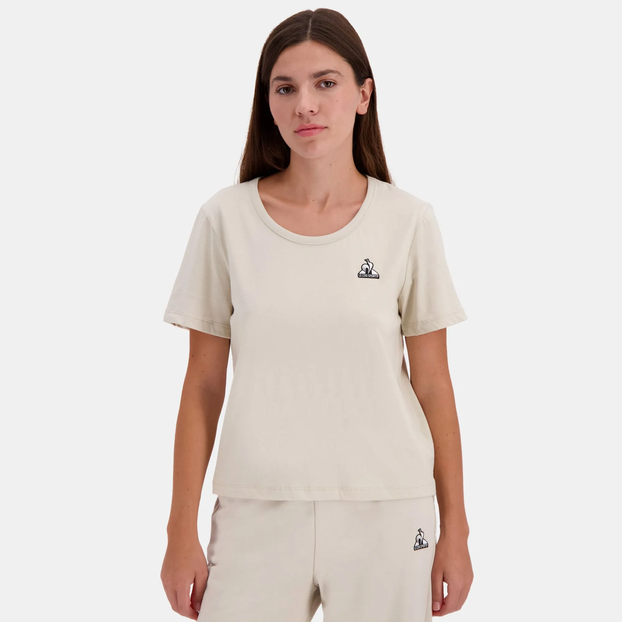 – Camiseta mujer beige de manga corta