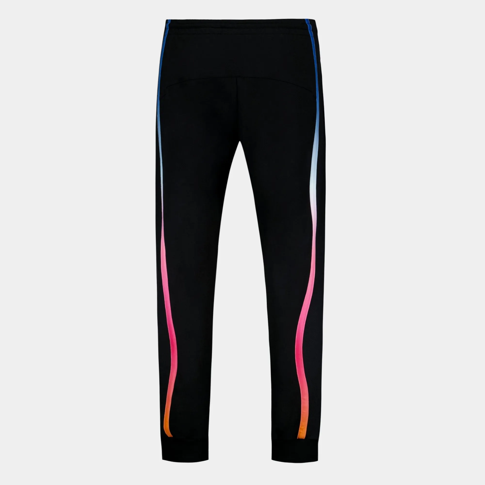 – Cinturilla elástica con cordón exterior, canesúes laterales en elegante material acanalado, bandas de poliéster degradado sublimado aplicadas en la parte delantera y trasera, 2 bolsillos ribeteados con cremallera en los laterales