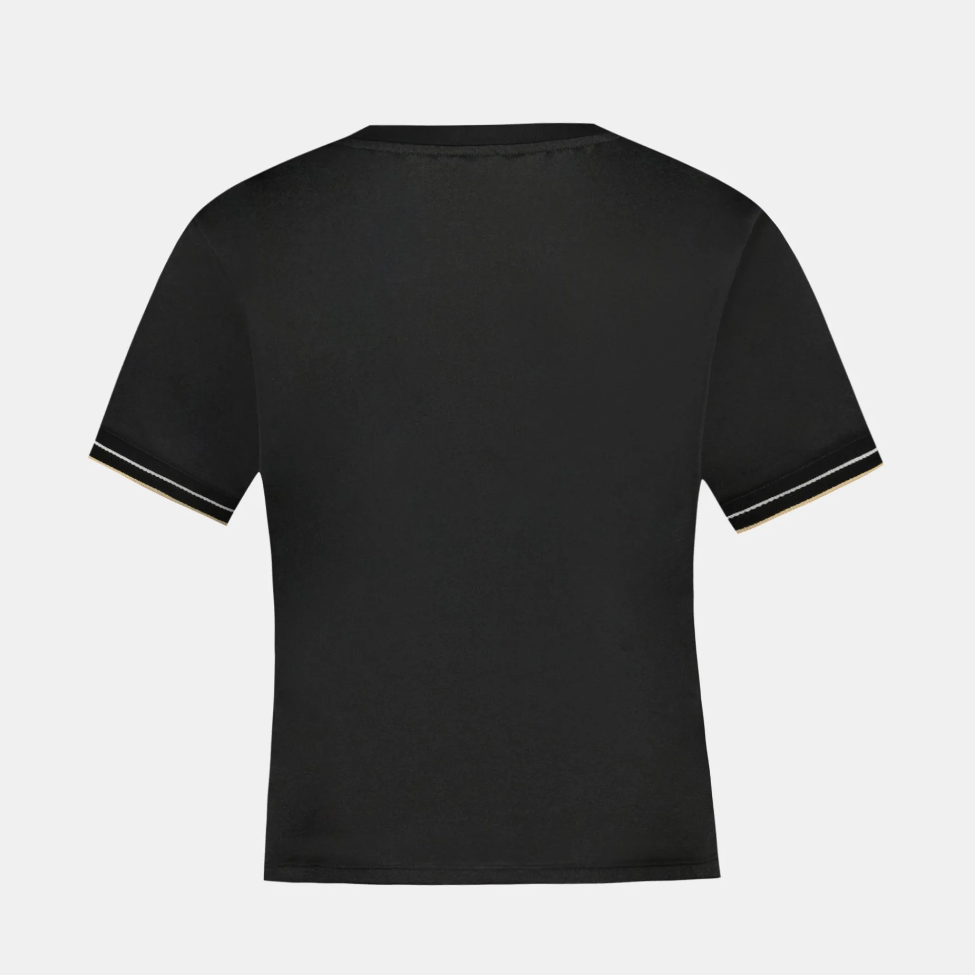 Su material mezcla poliéster y algodón para crear un sutil efecto brillante, reflejando el prestigio de las mayores hazañas deportivas. El corte regular de esta camiseta negra garantiza una silueta equilibrada y una comodidad óptima.