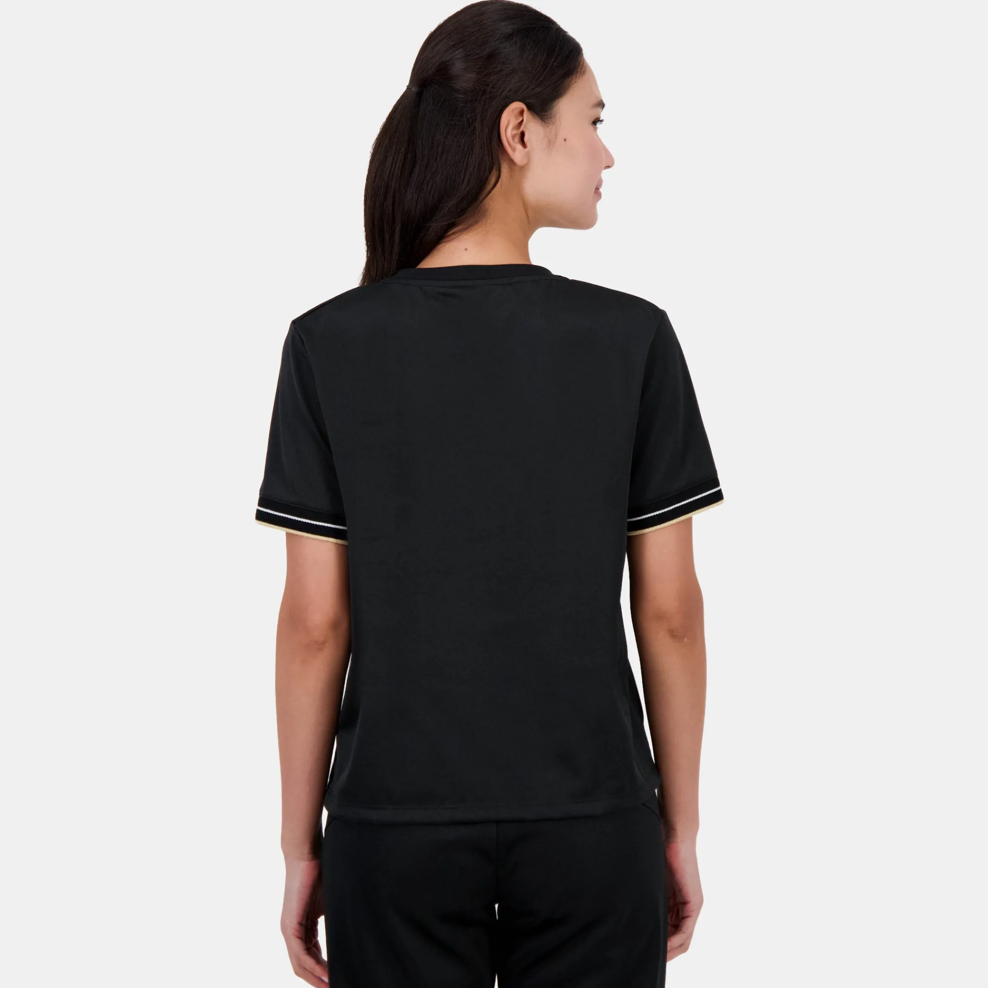 Inspirada en el atuendo del podio del equipo francés, esta icónica camiseta negra combina elegancia y prestigio.