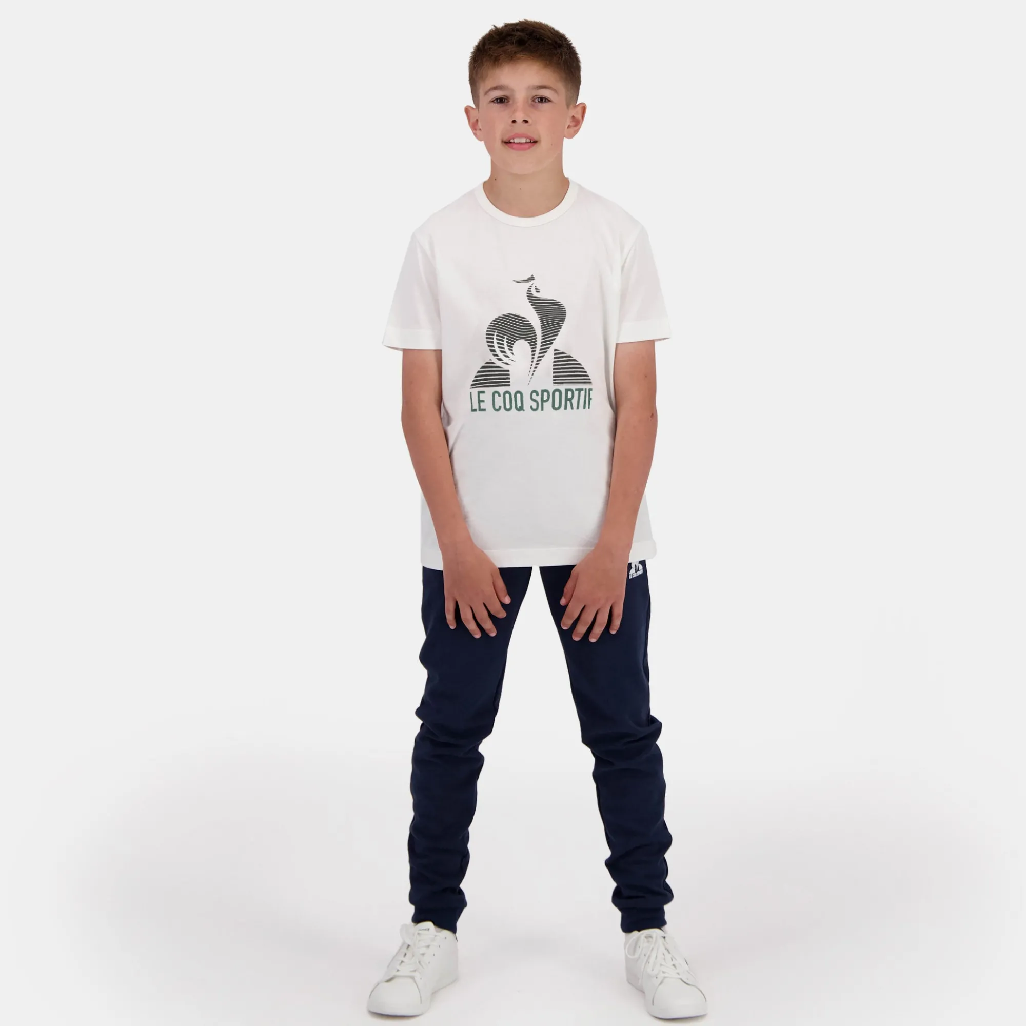 «Descubre esta camiseta gráfica para niños con los colores de Le Coq Sportif.