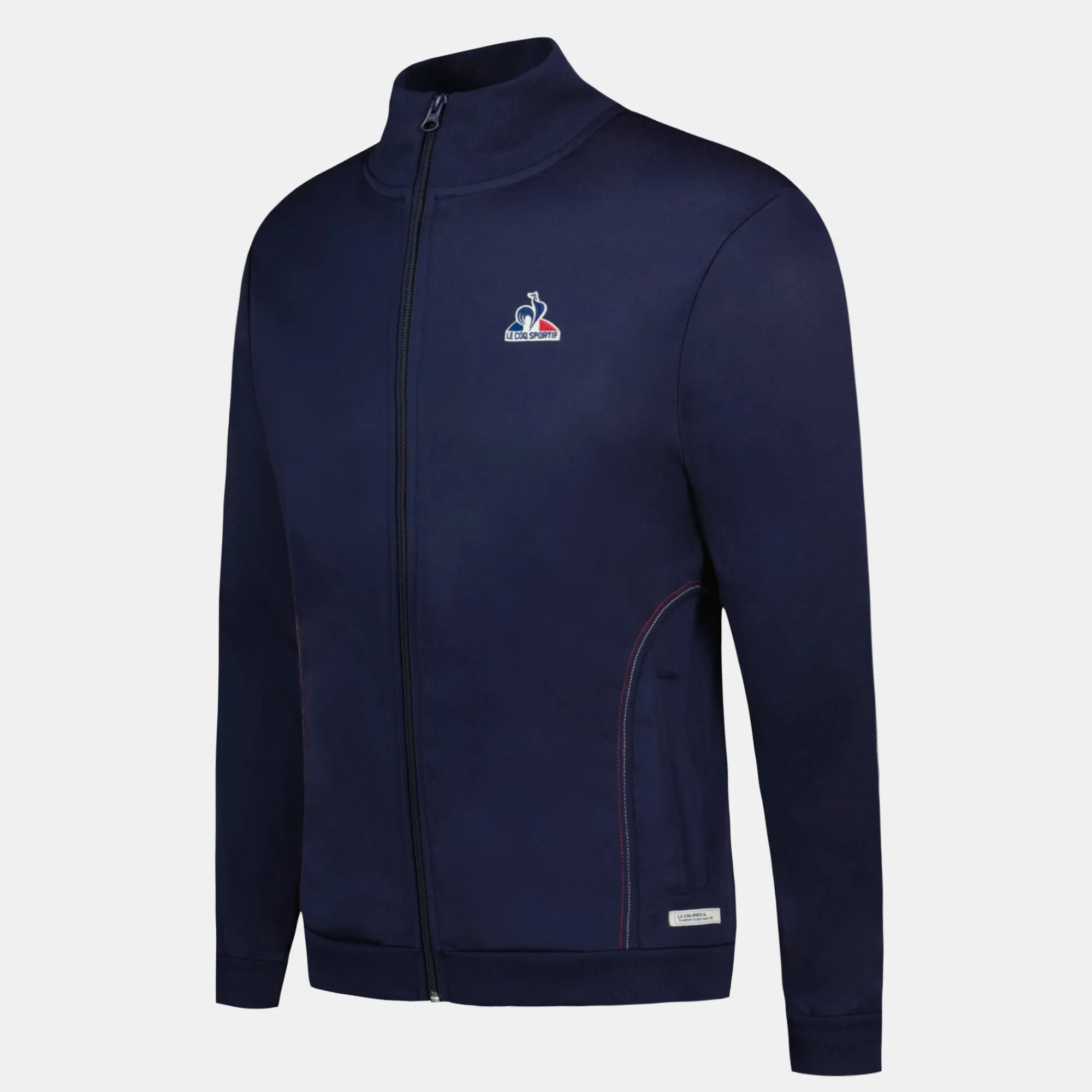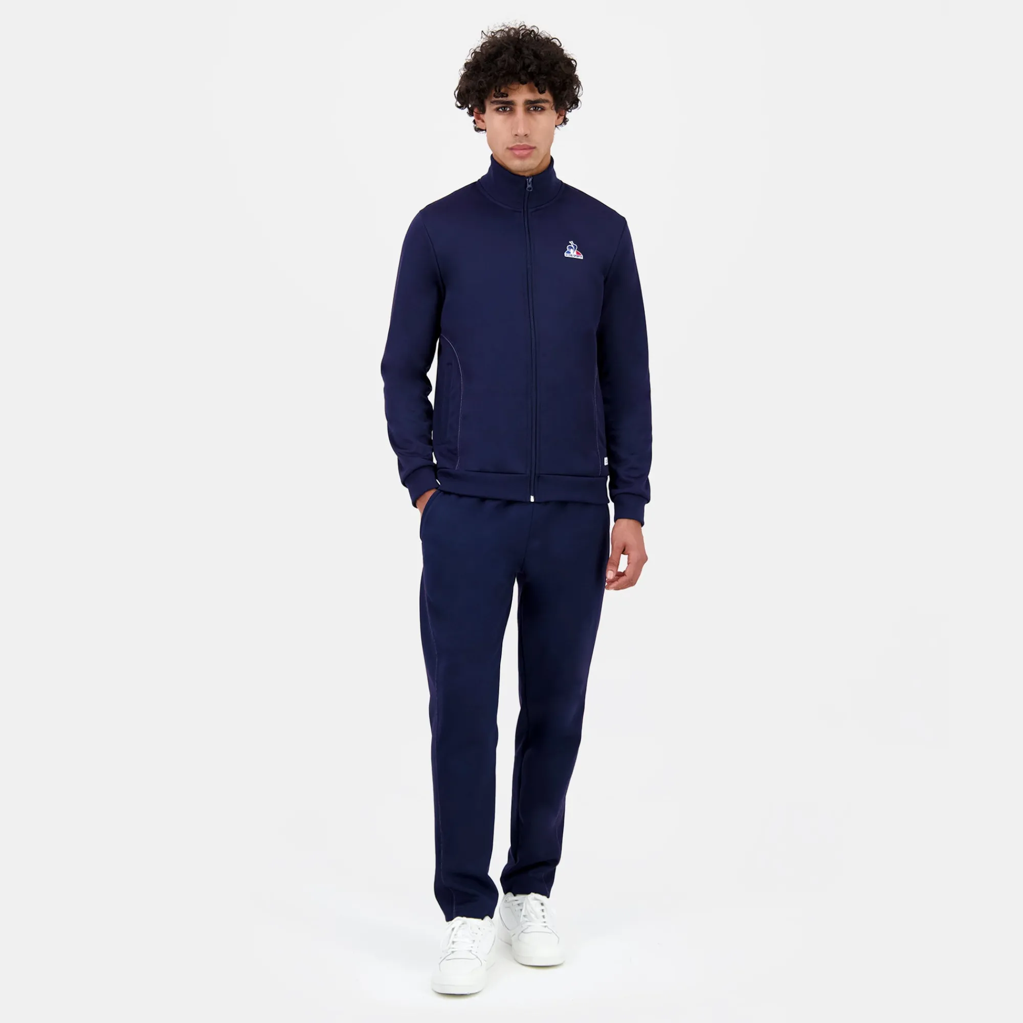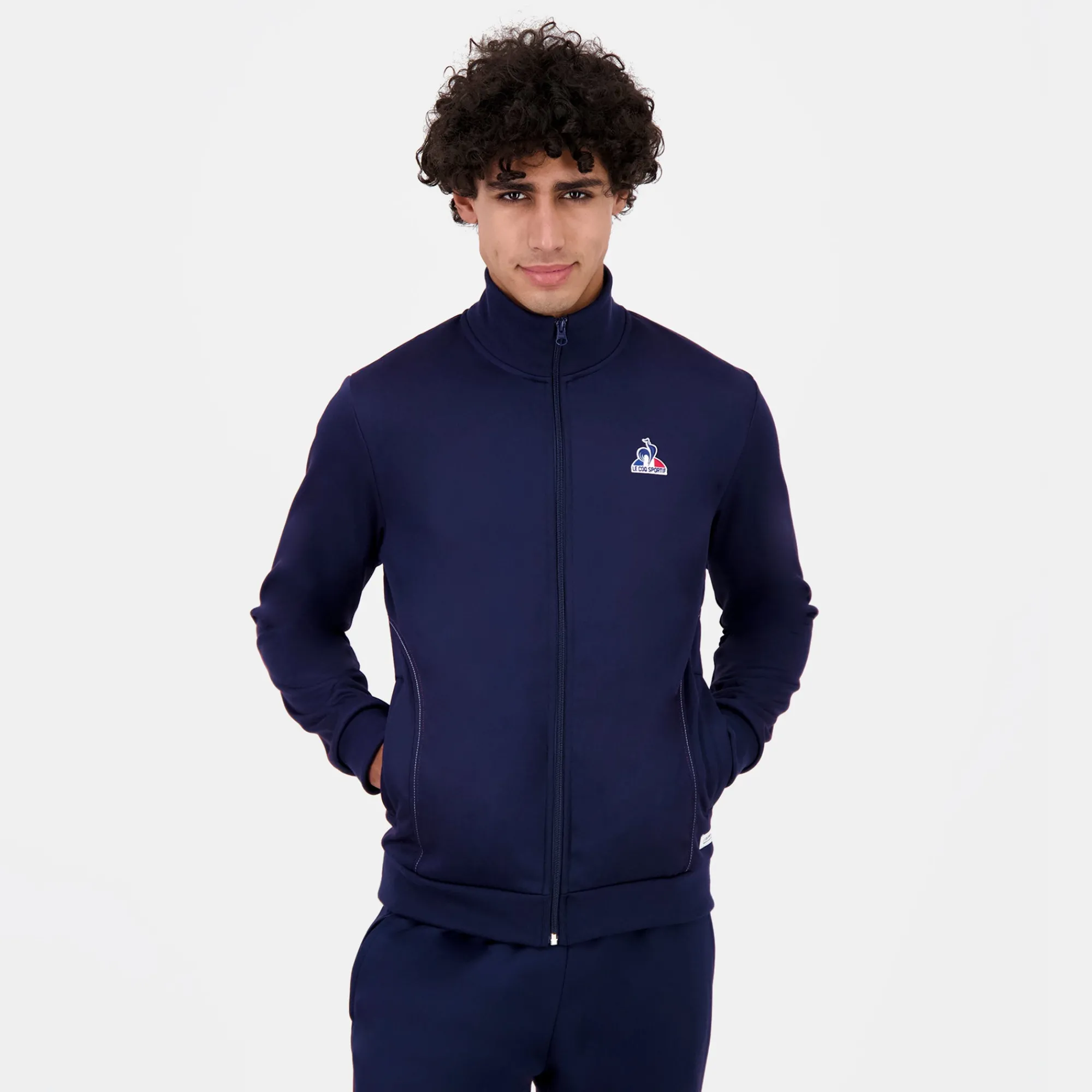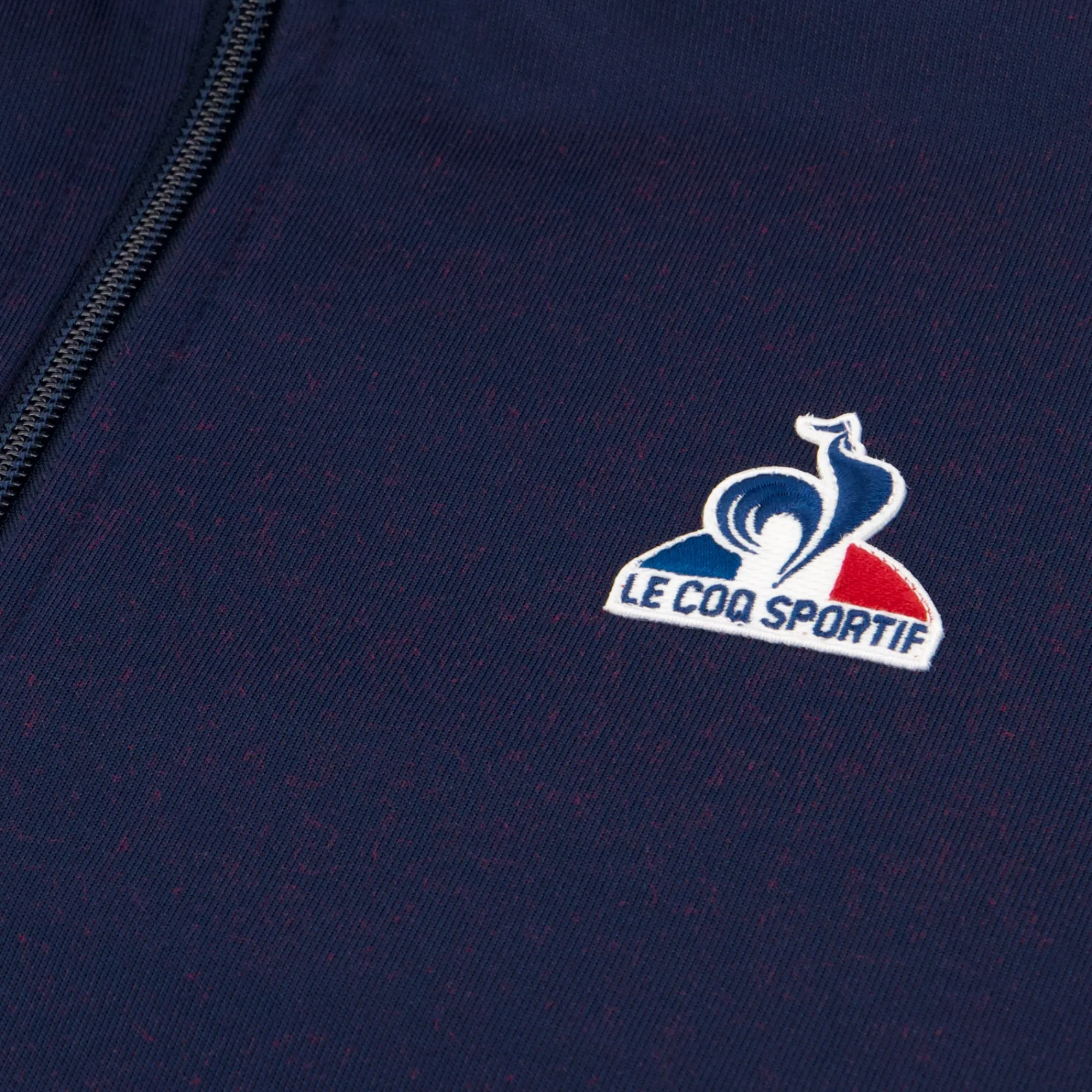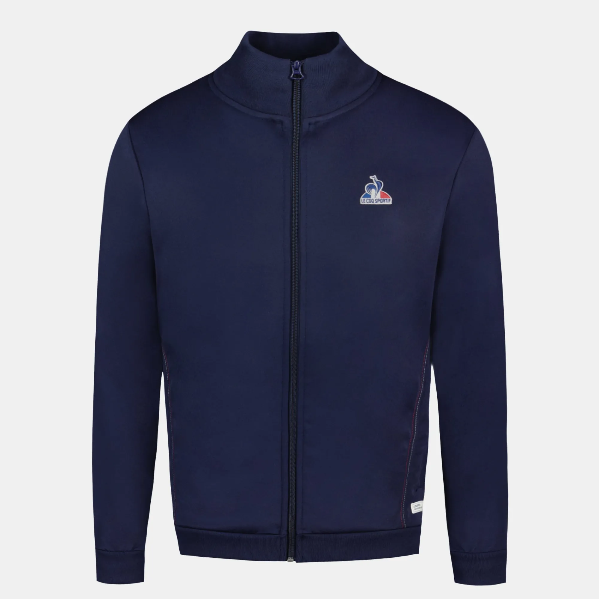 Sumérgete en el mundo de Le Coq Sportif con nuestra nueva chaqueta con cremallera azul marino, una pieza emblemática de la nueva colección Tricolore.