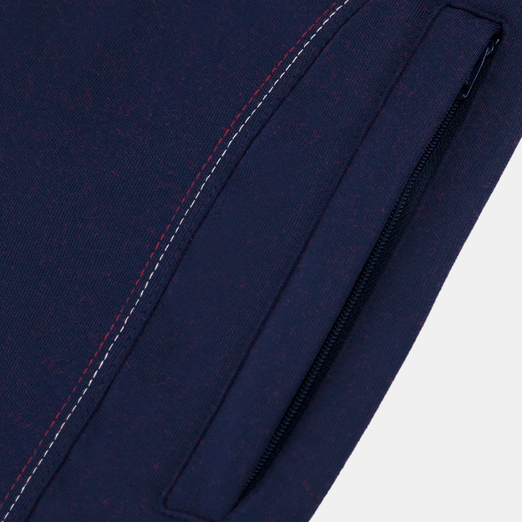Compuesta por un lado interior de algodón rojo y un lado exterior de poliéster azul, esta chaqueta con cremallera azul marino ofrece un equilibrio perfecto entre comodidad y suavidad, ideal para tus días activos o tus momentos de relajación. Con su corte regular, esta chaqueta con cremallera se adapta perfectamente a todas las morfologías, ofreciendo un look a la vez relajado y cuidado.