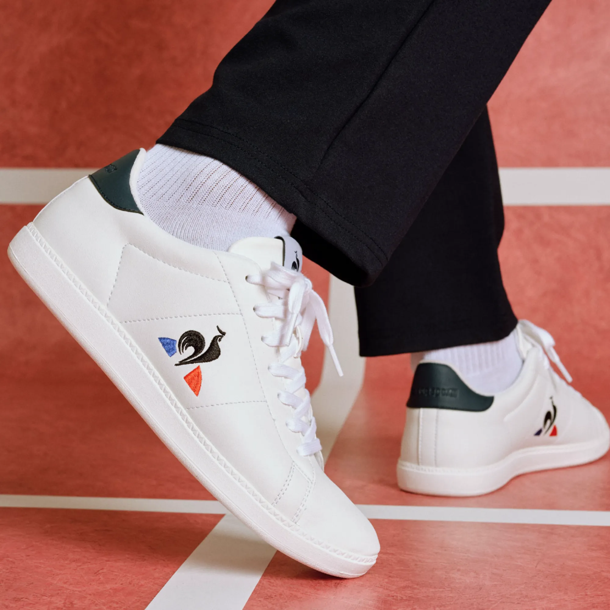 El Courtset_2 es un zapato con un diseño atemporal, con su parte superior de cuero limpio y su logotipo tricolor bordado en el costado que agrega un toque de estilo, mientras que el panel de cuero del talón le brinda un acabado elegante. Esta combinación de simplicidad y detalles sutiles lo convierte en una ventaja para un look atemporal y versátil.